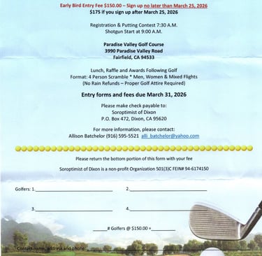 The second annual ART UNCORKED event hosted by Soroptimist International of Dixon on March 15, 2025 at the Legion Hall in Dixon, was again a resounding success. Attendees delighted in a diverse array of artwork from 16 local artists, savored delicious appetizers and desserts, and enjoyed European wines alongside a unique 'green mocktail.' The event also featured art-themed raffle prizes. A heartfelt thank you to everyone who participated, helping us raise funds to support women, girls, and our scholarship program. ~ Pres Barbara Rigdon